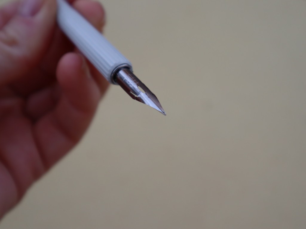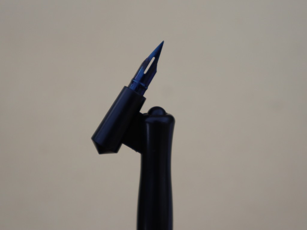 Olkavarressa on lisäosa, jonka ansiosta terä osoittaa on jo valmiiksi sopivassa kulmassa kirjoituslinjaan nähden: se on alunperin kehitetty kalligrafiatyyleihin (kuten copperplate ja italic) joissa teksti taipuu hieman oikealle. Olkavarsi auttaa siis tuottamaan helpommin tekstiä, joka kaartaa kauniisti oikealle ilman, että sinun tarvitsee pitää rannettasi epämukavassa asennossa. Olkavarsi on tästä syystä hyvin ergonominen lisävaruste, ja kannustan sinua kokeilemaan sitä!