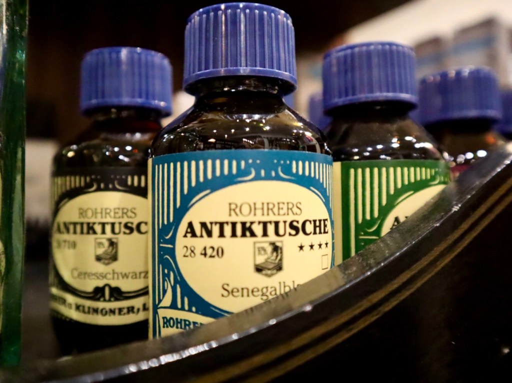Liikkeen oma muste: nämä perinteisillä menetelmillä käsityönä valmistetut musteet tehdään edelleen kuin 1700-luvulla. Musteet valmistaa alan mestari, joka käyttää raaka-aineina mm. Cambridgeshiren maaperästä löytyviä mineraaleja ja maapigmenttejä.