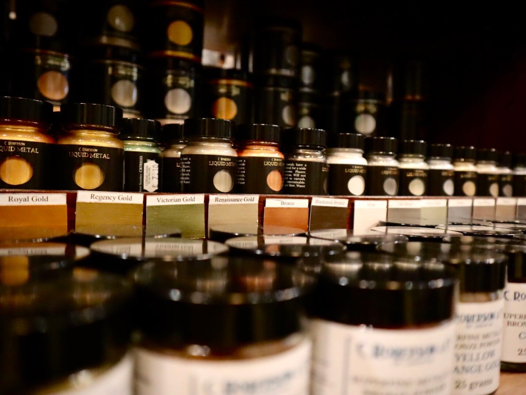 C.Roberson & Co erittäin hienojakoista metallipulveria. Nämä jauheet kestävät säilytystä pitkään. Jauhetta sekoittamalla maalausnesteeseen (painting medium) saadaan aikaan metallinhohtoisia maaleja.