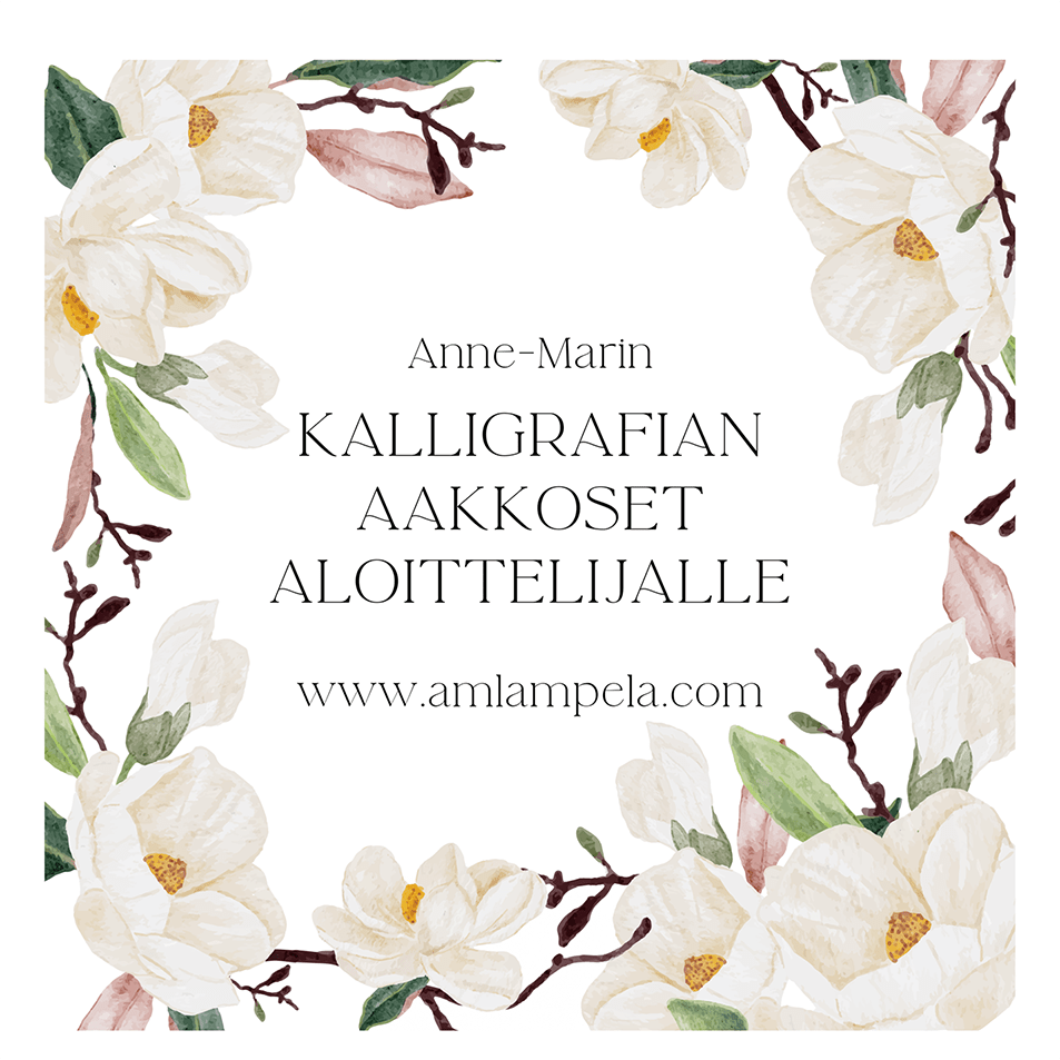 Jos kalenterissasi on tilaa vielä ja olet kiinnostunut oppimaan kalligrafian alkeita, tervetuloa mukaan kursseilleni. Huhtikuun 23. ja toukokuun alkeiskurssi ovat vielä mahdollisuutesi hankkia tiedot ja taidot kesää varten, jolloin voit harjoitella kalligrafiaa vaikka mökin laiturilla, kahvilan terassilla tai yhdessä ystävien kesken.