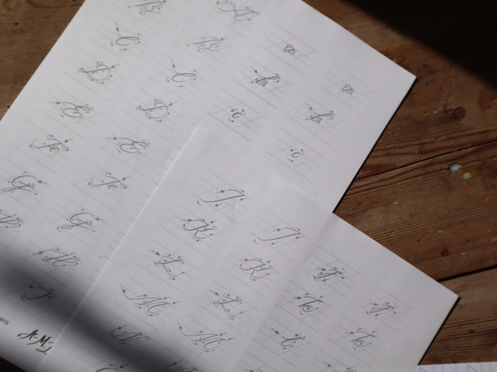 Otin Hailuotoon mukaan myös suunnittelemani Aloittelijan aakkoset, jotka tulostin Rhodia-kalligrafiapaperille. Harjoittelen aakkosia edelleen paljon, sillä perusasioiden ja liikkeiden toistaminen on mielestäni tärkeää kalligrafiassa. Nämä aloittelijan aakkoset ovat myös verkkokauppani valikoimassa. Löydät ne täältä. Valikoimassa on myös aakkoset kehittyneemmille kalligrafian harjoittelijoille.