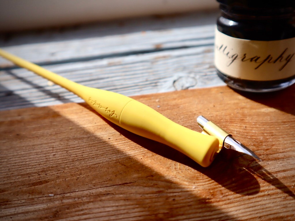 Mobliquen messinkinen lisäosa joustaa hieman, jonka ansiosta jopa jämäkkä Nikko G-terä tuntuu pehmeämmältä paperia vasten.