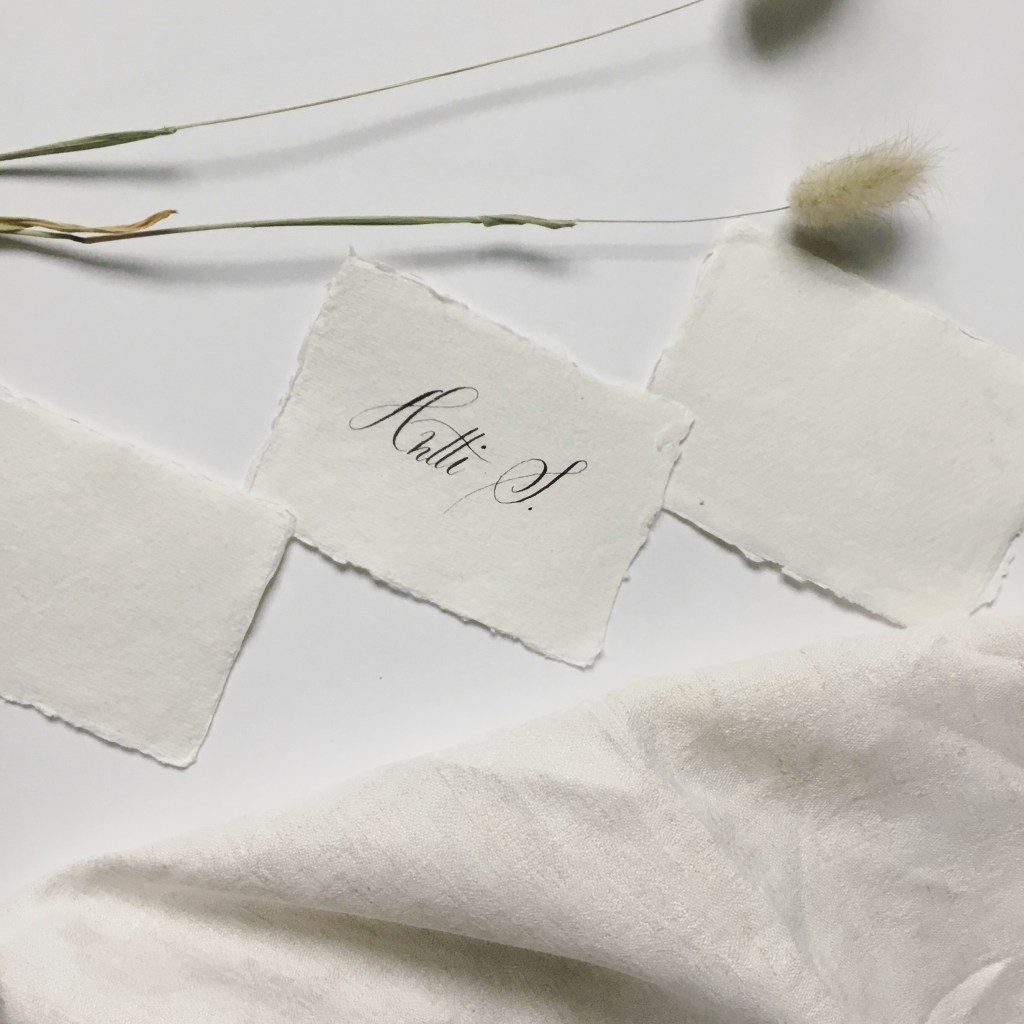 Sanan ”kalligrafia” etymologia tulee vanhasta kreikan kielestä ja tarkoittaa suorana käännöksenä ”kaunis kirjoitus”. Kalligrafian alalajeja on useita, joista tunnetuimmat ja vanhimmat tyylilajit ovat Copperplate ja Italic. Moderni kalligrafia on näihin verrattuna vapaampaa ja persoonallisempaa. Modernissa kalligrafiassa saa näkyä tekijän persoonallisuus. Sääntöjä ei ole. Mihin kalligrafian palveluita voi käyttää? Jos haluat painettuihin kutsuihin ripauksen ylellisyyttä, on kalligrafia loistava valinta! Voit tilata minulta palvelun osana kutsujen suunnittelua tai jo valmiiden kutsujen kustomointiin! Jos haluat juhliisi kauniin ja viimeistellyn lopputuloksen, tämä palvelu on juuri sinua varten.